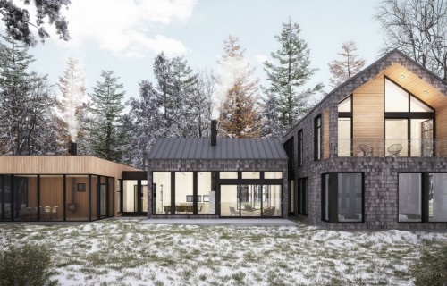 This home is characterized by its three different volumes and large windows which allows for high ceiling in the common rooms and lots of natural light.