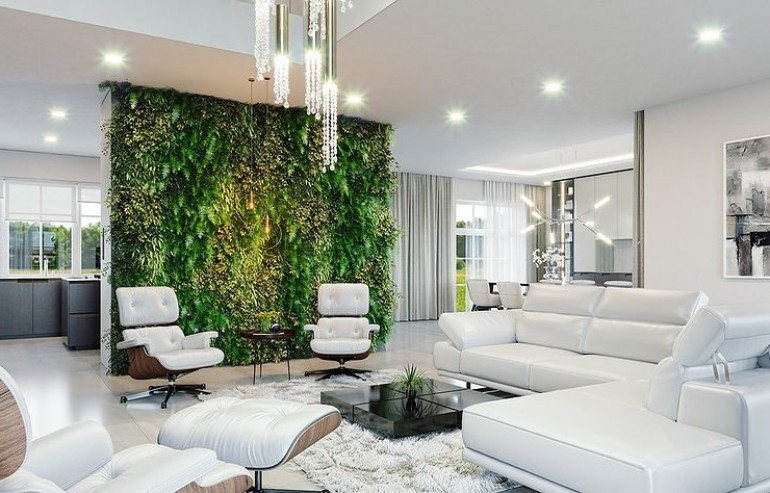 We present the Villa Seat project with a classic representative villa, whose architectural style refers to the best twentieth-century designs of suburban residences. The design draws on the historical patterns of residential architecture, is full of interesting details, and at the same time combines the completely modern function of a comfortable single-family house. The building is designed on a rectangular plan, with a wide front and garden façade, so that it fits perfectly on a square-shaped plot, leaving room for a nice garden and a lot of space from the front. The fragmented body consists of several smaller fragments. The core of the house is a multi-storey part enclosed around one-story extensions. From the front we have a beautifully accentuated entrance, with wide doors with floodlights, leading to the vestibule and the large hall. The front is also two beautiful bay windows - the kitchen and dining room of the household, and a balcony from the lounge-library on the first floor. The garage, set back a few meters to the rear, is inconspicuous, and at the same time moving back the garage increases the driveway. The rear facade of the villa is equally interesting. We have a two-story window from the living room opening a view of the garden and beautifully illuminating the living room, and two exits to the terrace - under the romantic pergola, and to a large arcade - a part of the terrace roofing. The large window from the study also opens onto the garden side. Upstairs, a wide balcony window with a balcony connects the bedroom of your house with a garden view. The interior of the house is functionally divided as follows: the entrance zone on the ground floor consists of a vestibule with a cloakroom, connected with a representative hall with stairs in front of the entrance. The end of this axis is the office. From the hall we go left to the living area, more private, and here we have a living room with a void open to the mezzanine on the first floor, a dining room - a real dining room, and a kitchen with a mini-dining room for quick everyday meals. The right side of the house is a garage with a utility room. The first floor is divided into two parts - separated by a void above the living room and a mezzanine, which is the home library and at the same time an extension of the ground floor living room. On the left side there are two children's bedrooms with wardrobes and a bathroom, on the right side there is a parents' apartment with a wardrobe and a bathing room, and one more bedroom with a bathroom. The house, despite its extensive plan and functions, and a truly representative silhouette, is not that big. Its surface is slightly larger than a normal single-family house, thus proving that you do not need to build a thousand-meter colossus to have everything - the whole set. The house is designed with energy-saving materials, has good insulation and modern installations. It will be inexpensive to use. When it comes to construction costs - it won't be cheap, but the end result is worth the sin in our opinion. If you want to have something beautiful, above average - it has to cost above average. This house will not leave anyone indifferent. Welcome!