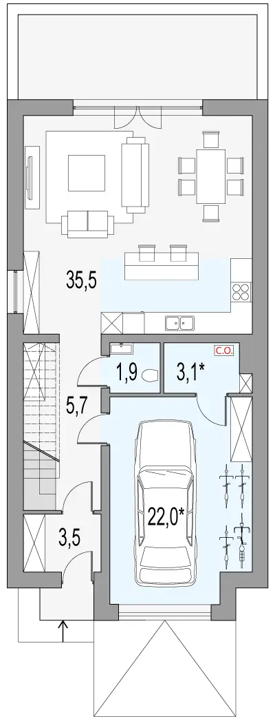 3. Garaż jednostanowiskowy22 m2
