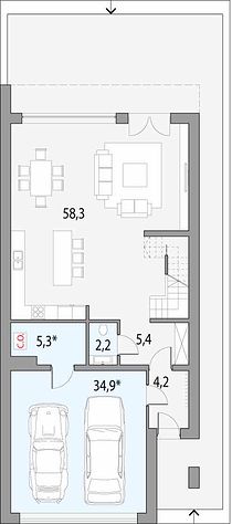 3. Pokój dzienny + jadalnia + kuchnia58,30 m2