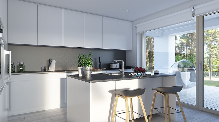 House plan with an attic Available 4B with a 1-storey garage, a gable roof, a terrace and a mezzanine.