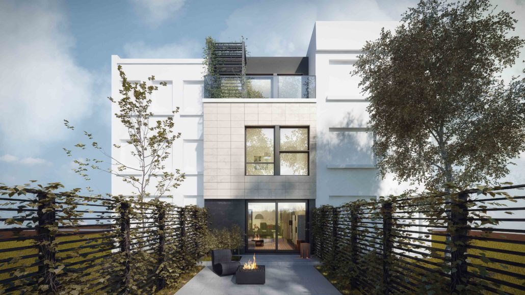 The tunnel of light surrounding the open staircase and the split-level configuration maximize the home’s space. There is a spare room/gym and a terrace on the street side. The backyard and op terrace is sheltered by a JNCN pergola for added privacy in an urban garden setting.