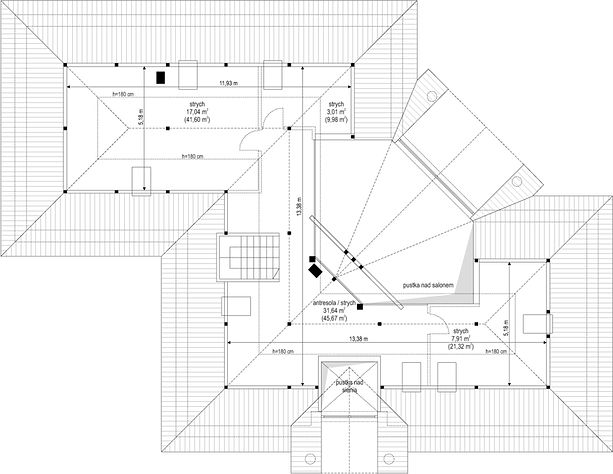 1. Antresola/strych31,64 m2 (45,67 m2)