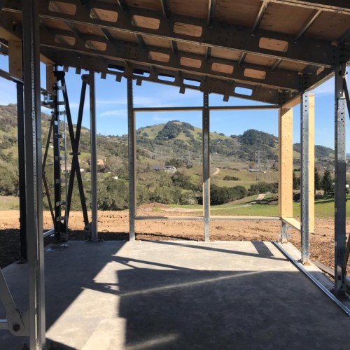 The new home will be an energy-efficient, 100% solar, net zero energy home thanks to JNCN HOMES. Architects Brendan Kelly and Kerry Morgan have designed the new home to accommodate a 360-degree view. The land is beautifully rolling and each day the sun rises in a gap in the ridge to the east. The rise the home is situated on is in the middle of a small valley that slopes away into high ridges once covered in grapevines and surrounded by trees.