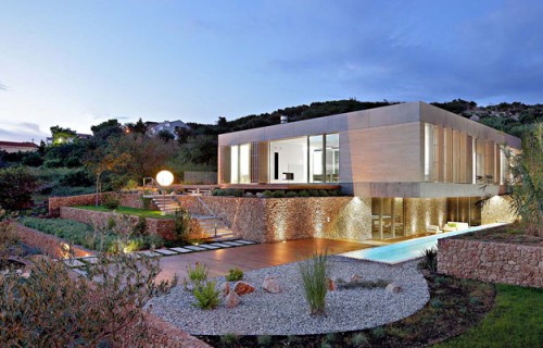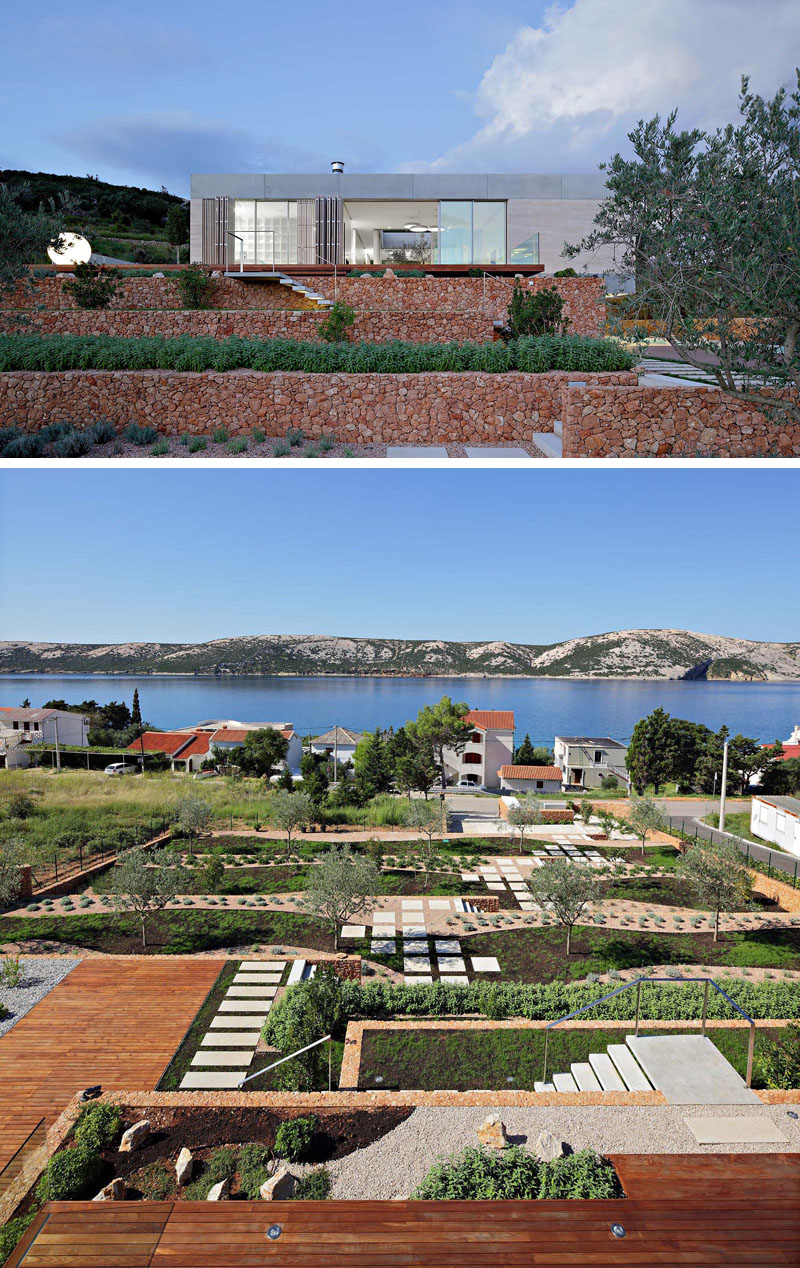 This Island House Has A Large Landscaped Terraced Garden And An Atrium With A Single Olive Tree