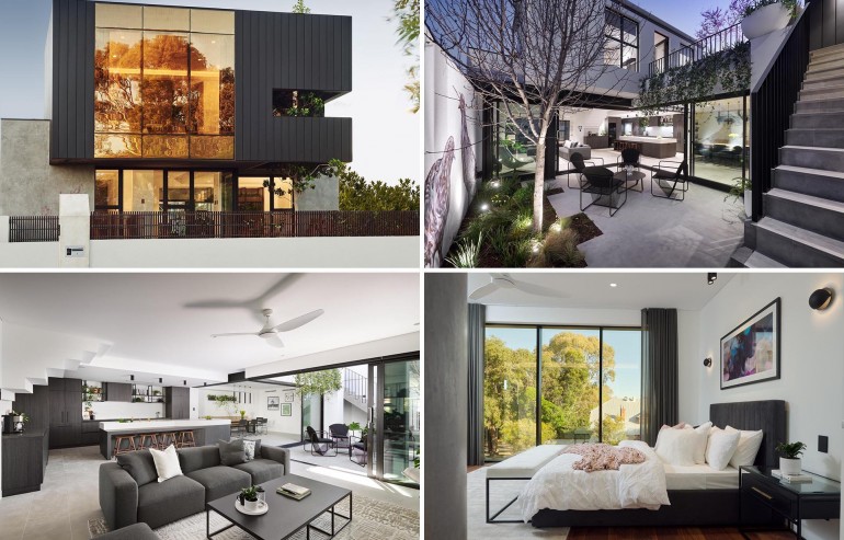 A Dark Grey Color Palette Is Consistently Found Inside And Outside This Modern House