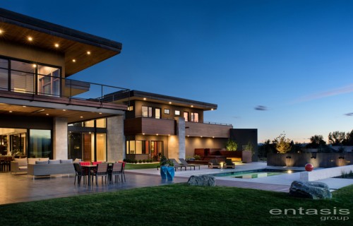 This new house on a hillside overlooks the Rocky Mountains in Colorado