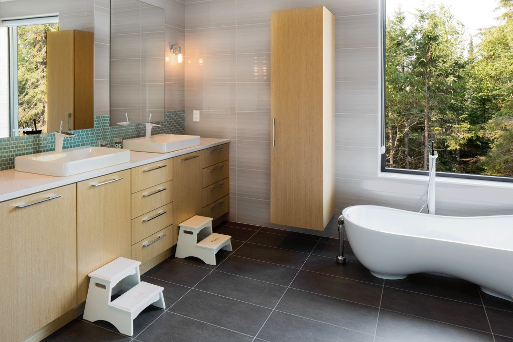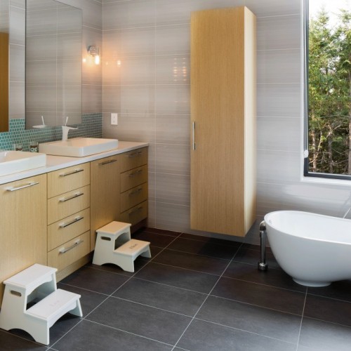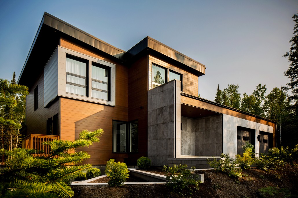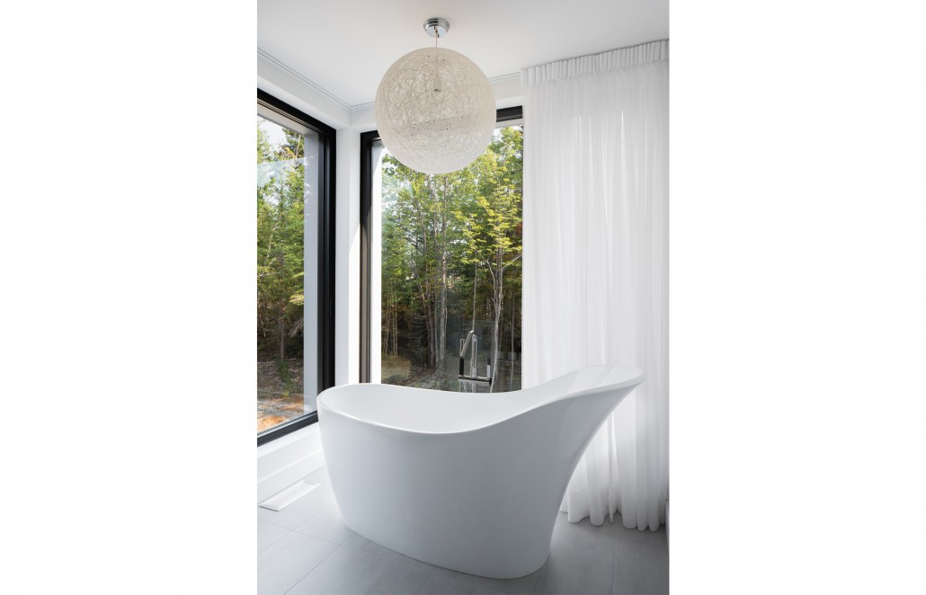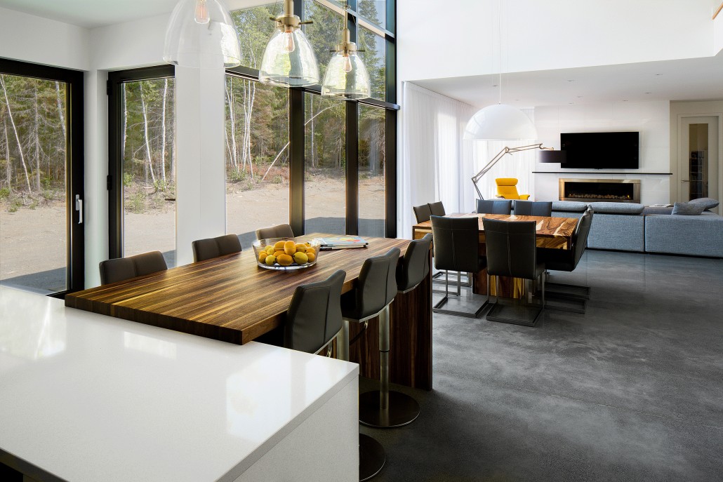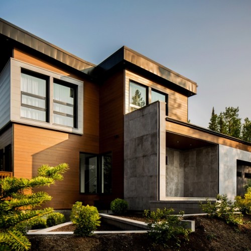 A two storey family home occupied by a young professional couple, their son and a baby girl. The location is a remote area of northern Quebec and the home is surrounded by forest. The home’s beautiful architecture is complemented by a stunning interior that was designed entirely by the JNCN HOMES team, including a curtain wall and a bright, open-plan main floor featuring a large kitchen. Upstairs is a master bedroom with ensuite bathroom and a room for each child. Vehicles are also protected from the bitterly cold winters in an adjoining double garage.