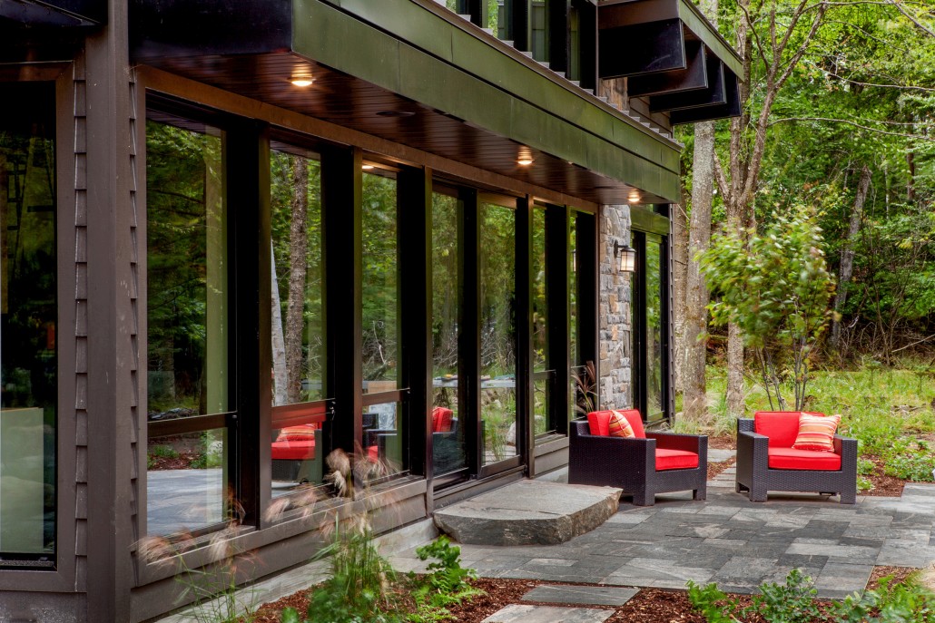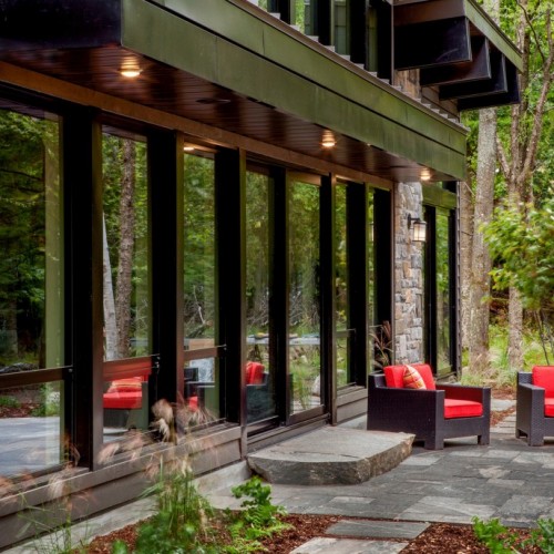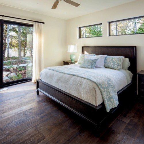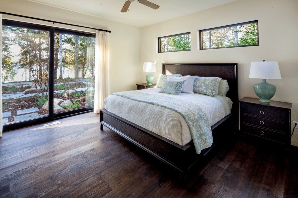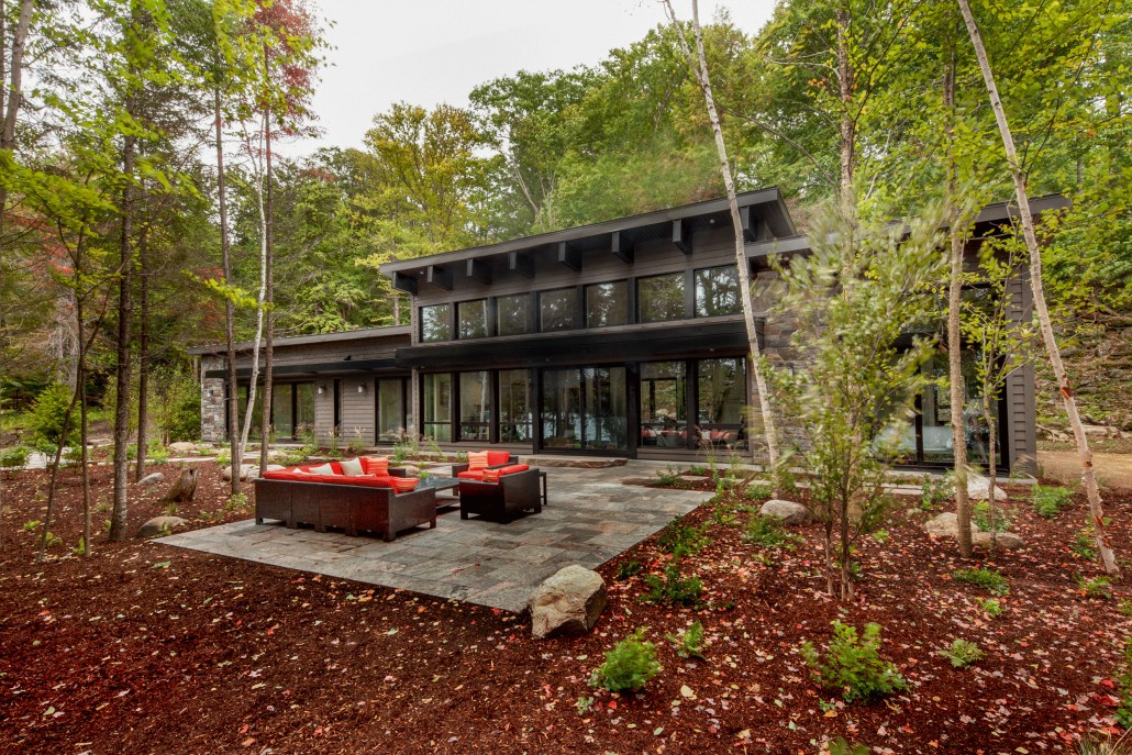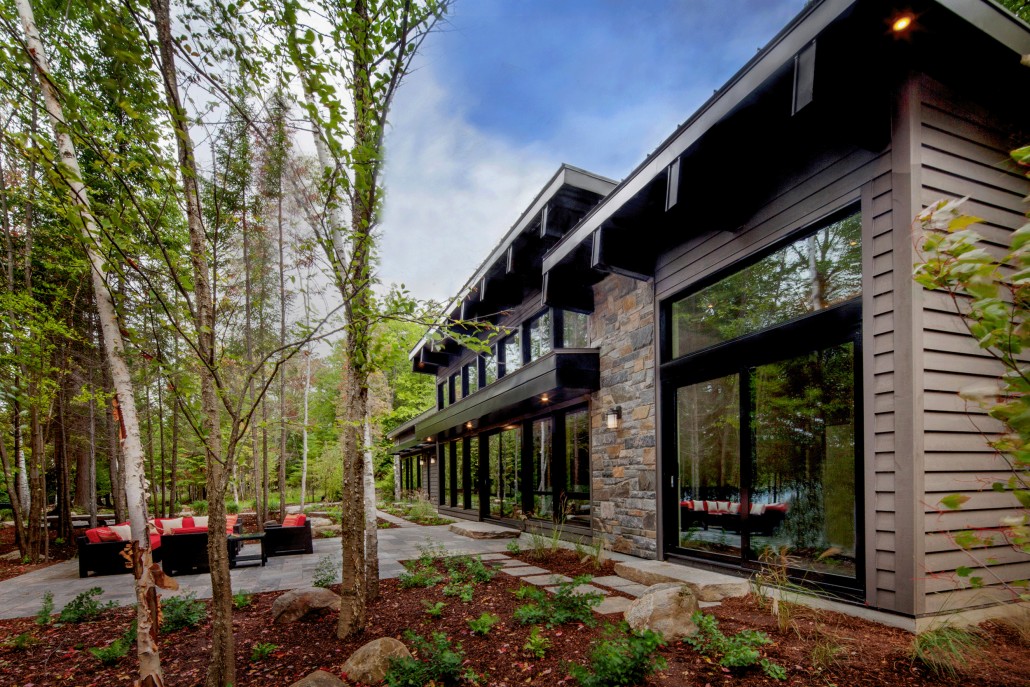 This custom design country home is located on an exclusive island in the Muskoka region of Ontario. This one-of-a-kind cottage is a dynamic mix of Muskoka-style luxury and modern design. The home has four bedrooms with lake view and large open-concept common space that invites nature inside.