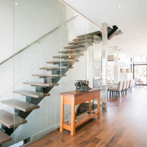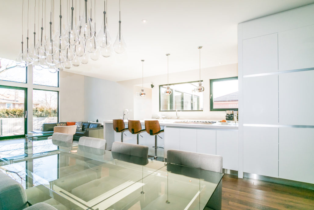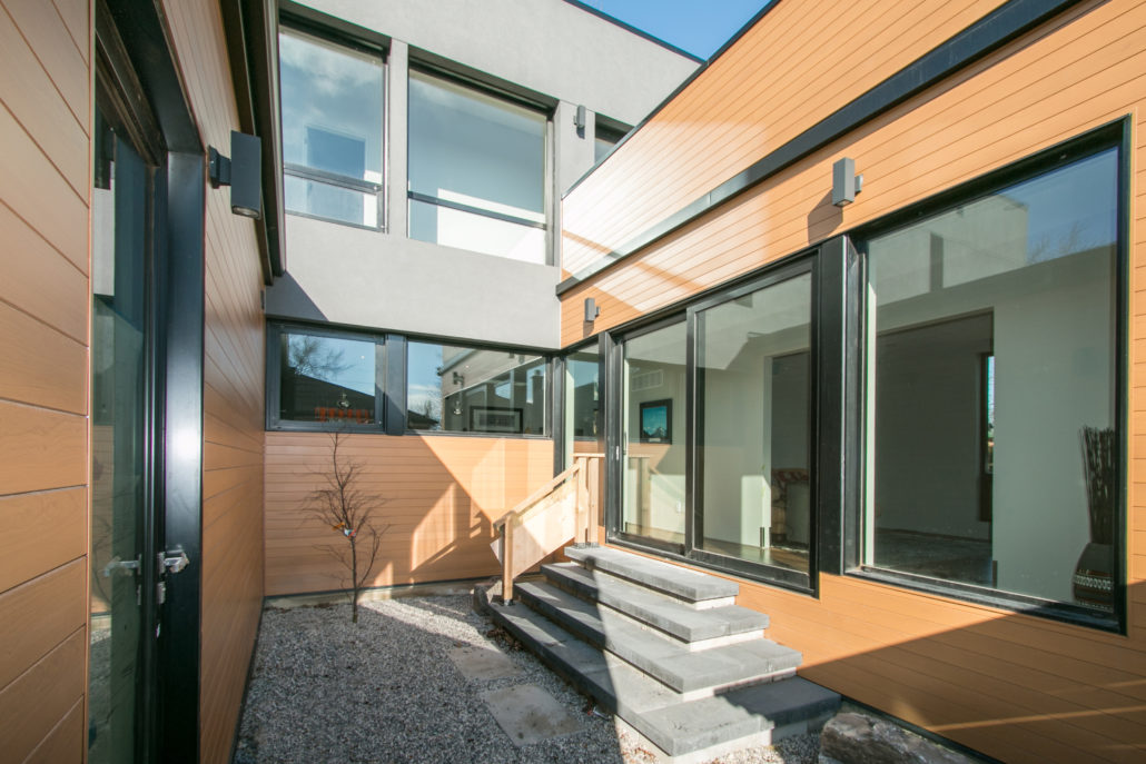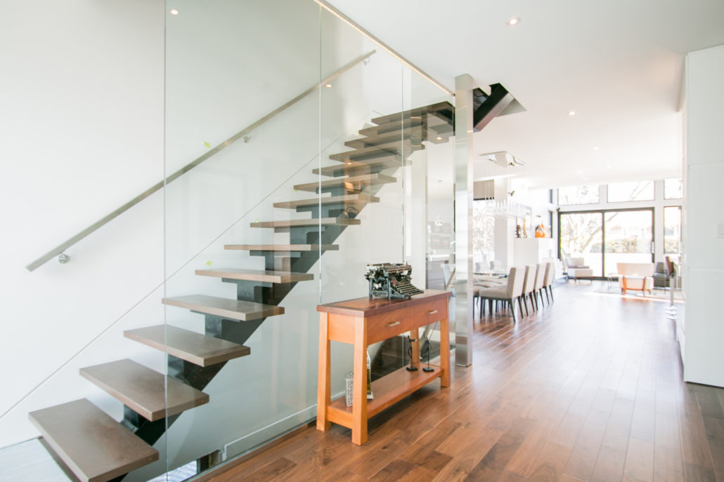This custom home project in Oakville was designed based off our Modern Contemporary inspirations. The home features an open concept living space that includes a kitchen and dining room, as well as an double height ceiling living room which the focal point of the home. On the second floor there is master bedroom with ensuite and two additional rooms with a main bathroom. The home also includes a 2 car garage, finished basement and an inner courtyard.